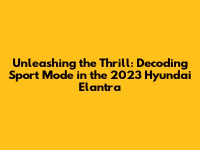 Unlocking Performance: 2023 Hyundai Elantra Sport Mode Explained