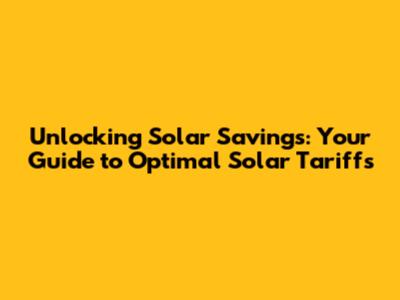 Unlocking Solar Savings: Your Guide To Optimal Solar Tariffs
