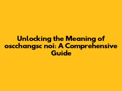 Unlocking The Meaning Of Oscchangsc Noi: A Comprehensive Guide