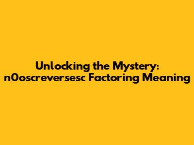 Unlocking The Mystery: N0oscreversesc Factoring Meaning