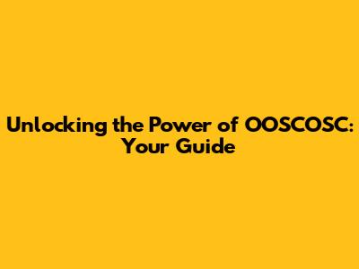 Unlocking The Power Of OOSCOSC: Your Guide