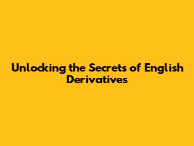 Unlocking The Secrets Of English Derivatives