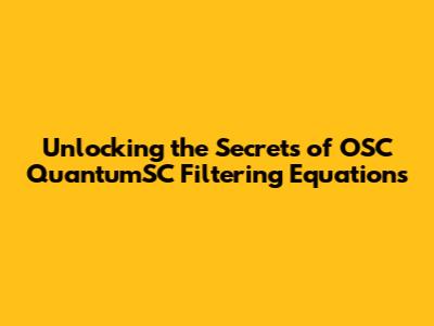 Unlocking The Secrets Of OSC QuantumSC Filtering Equations