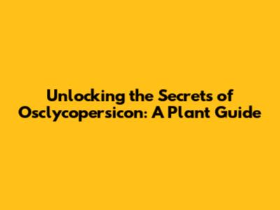 Unlocking The Secrets Of Osclycopersicon: A Plant Guide