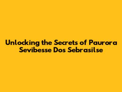 Unlocking The Secrets Of Paurora Sevibesse Dos Sebrasilse