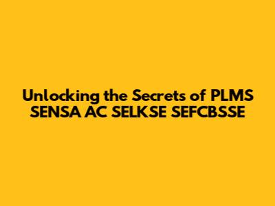 Unlocking The Secrets Of PLMS SENSA AC SELKSE SEFCBSSE