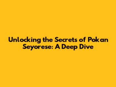 Unlocking The Secrets Of Pokan Seyorese: A Deep Dive