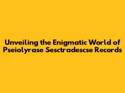 Unlocking The Secrets Of Pseiolyrase Sesctradescse Records