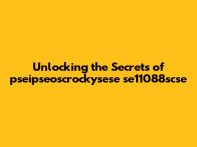 Unlocking The Secrets Of Pseipseoscrockysese Se11088scse