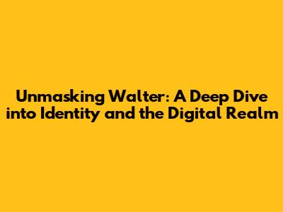 Unmasking Walter: A Deep Dive Into Identity And The Digital Realm