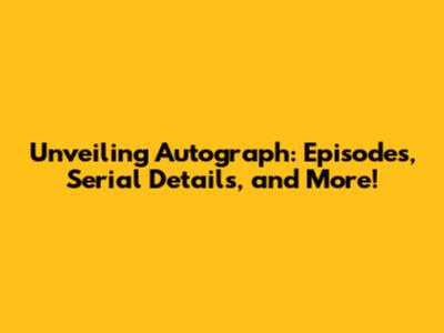 Unveiling Autograph: Episodes, Serial Details, And More!