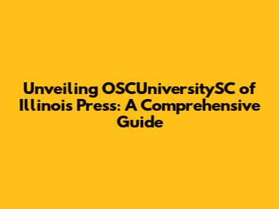 Unveiling OSCUniversitySC Of Illinois Press: A Comprehensive Guide