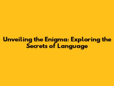 Unveiling The Enigma: Exploring The Secrets Of Language