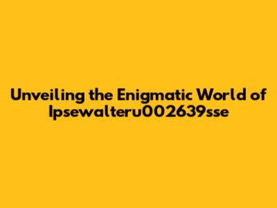 Unveiling The Enigmatic World Of Ipsewalteru002639sse