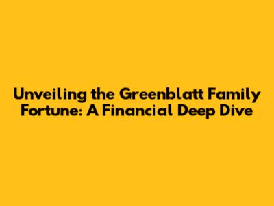 Unveiling The Greenblatt Family Fortune: A Financial Deep Dive