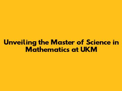 Unveiling The Master Of Science In Mathematics At UKM