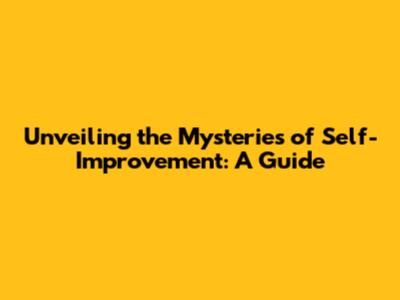 Unveiling The Mysteries Of Self-Improvement: A Guide