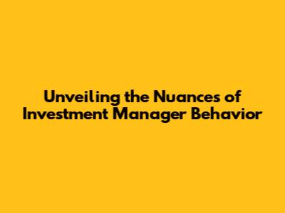 Unveiling The Nuances Of Investment Manager Behavior