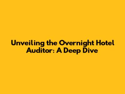 Unveiling The Overnight Hotel Auditor: A Deep Dive