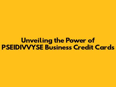 Unveiling The Power Of PSEIDIVVYSE Business Credit Cards