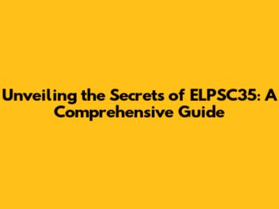 Unveiling The Secrets Of ELPSC35: A Comprehensive Guide