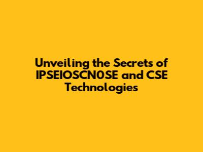 Unveiling The Secrets Of IPSEIOSCN0SE And CSE Technologies