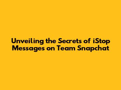 Hey there, Snapchat enthusiasts! Ever found yourself scratching your head about those mysterious "iStop" messages popping up on Team Snapchat? You're not alone! Many users are curious about what these messages signify and why they appear. Well, buckle up, because we're about to dive deep into the world of iStop messages, unraveling their meaning, and exploring their impact on your Team Snapchat experience. So, let's get started, shall we?