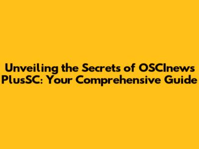 Unveiling The Secrets Of OSCInews PlusSC: Your Comprehensive Guide