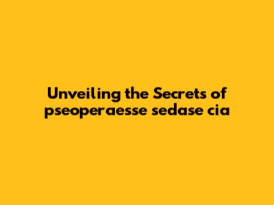 Unveiling The Secrets Of Pseoperaesse Sedase Cia