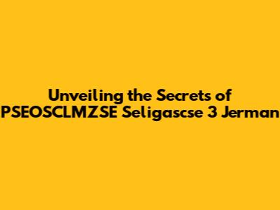 Unveiling The Secrets Of PSEOSCLMZSE Seligascse 3 Jerman