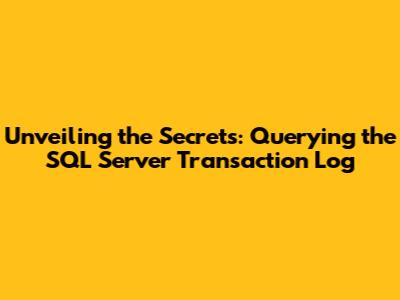 Unveiling The Secrets: Querying The SQL Server Transaction Log