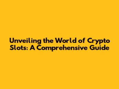 Unveiling The World Of Crypto Slots: A Comprehensive Guide