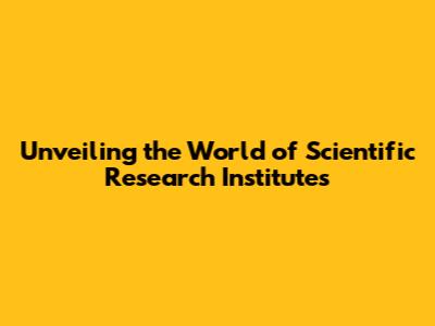 Unveiling The World Of Scientific Research Institutes