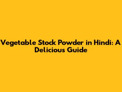 Vegetable Stock Powder In Hindi: A Delicious Guide