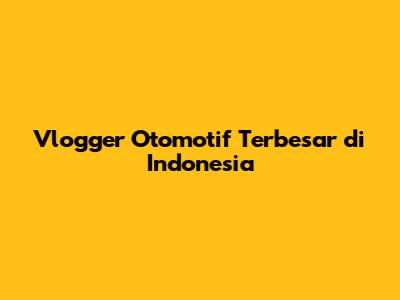 Vlogger Otomotif Terbesar Di Indonesia