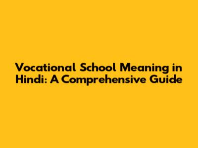 Vocational School Meaning In Hindi: A Comprehensive Guide