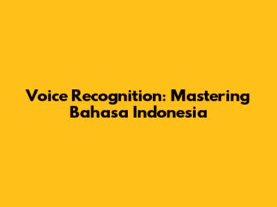 Voice Recognition: Mastering Bahasa Indonesia