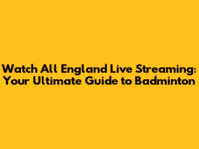 Where to Watch All England Live Streaming: Your Streaming Guide