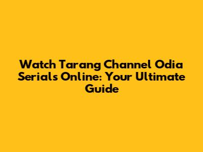 Watch Tarang Channel Odia Serials Online: Your Ultimate Guide