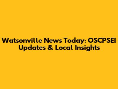 Watsonville News Today: OSCPSEI Updates & Local Insights
