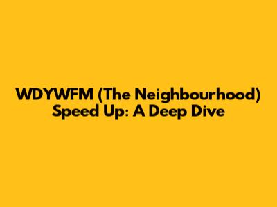 WDYWFM (The Neighbourhood) Speed Up: A Deep Dive