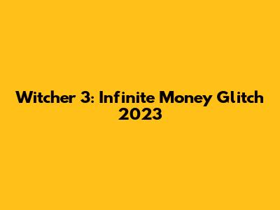 Witcher 3: Infinite Money Glitch 2023