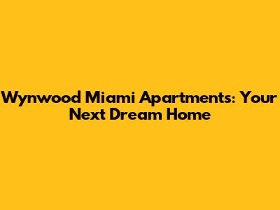 Wynwood Miami Apartments: Your Next Dream Home