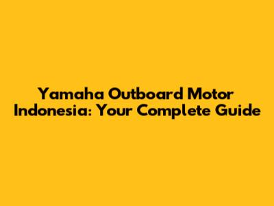 Yamaha Outboard Motors In Indonesia: A Comprehensive Guide