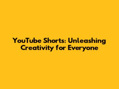 YouTube Shorts: Unleashing Creativity For Everyone