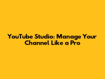 YouTube Studio: Manage Your Channel Like A Pro